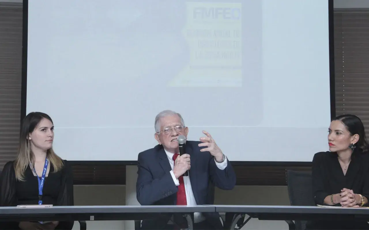 El libro “Guías farmacológicas en el consultorio dental” fue presentado por el propio autor, acompañado por Alma Gloria Chapa Chapa, coordinadora administrativa del programa académico de Médico Cirujano Dental de la UDEM; y Norith Reséndez Santillana, profesora del mismo Departamento.