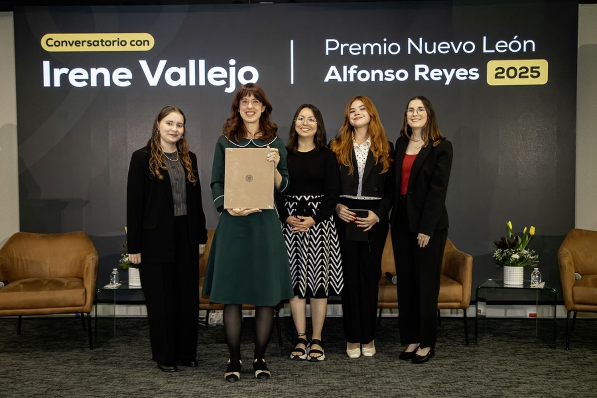 - Después de recibir el Premio Nuevo León Alfonso Reyes 2025, Irene Vallejo, autora del ensayo de no ficción El infinito en un junco, tuvo un conversatorio con estudiantes del área de Humanidades de la Universidad de Monterrey