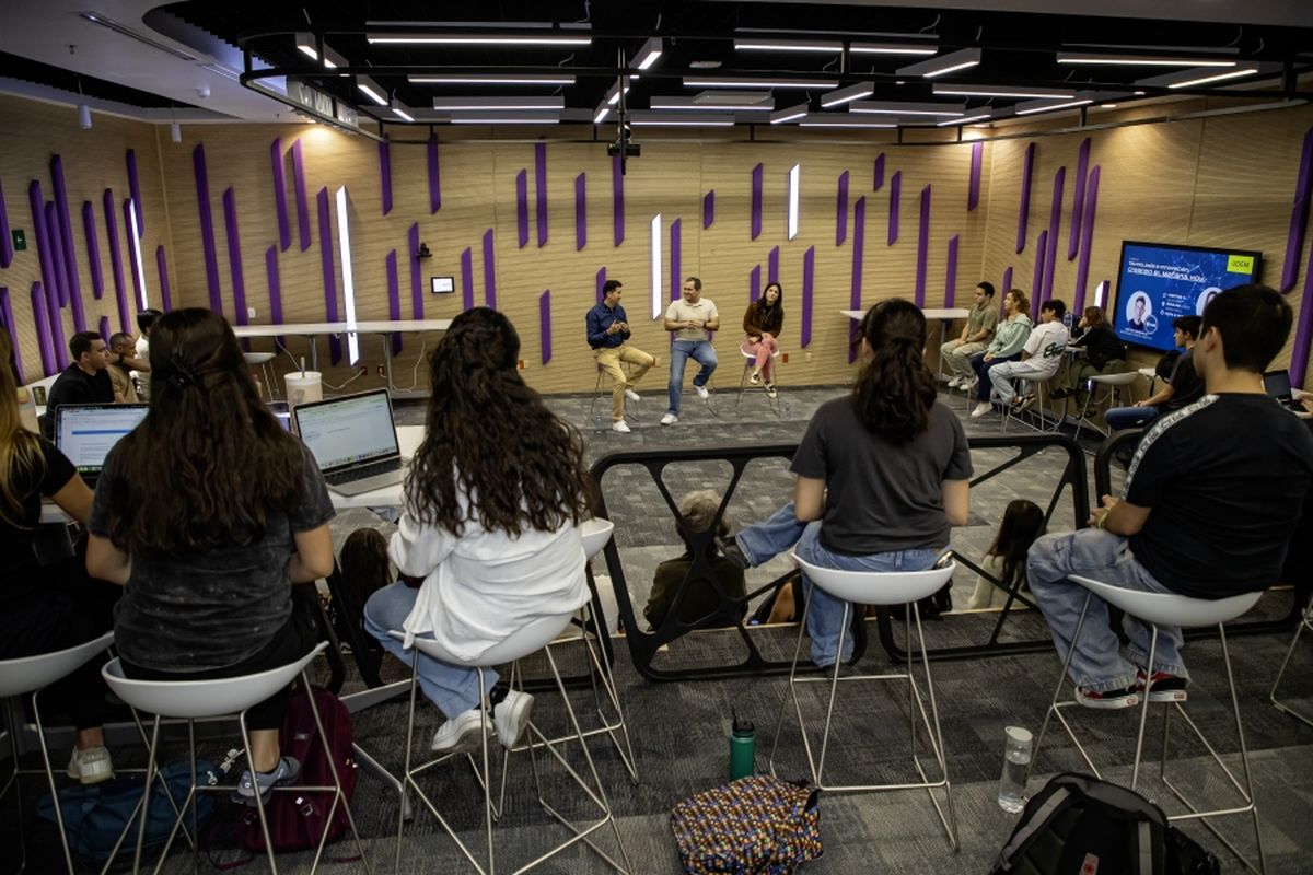 El diálogo estudiantil se realizó al mediodía de este viernes 3 de octubre en el EduLab del Centro de Estudios del Futuro de la UDEM, convocado por la Dirección de Transformación Digital de esta casa de estudios.