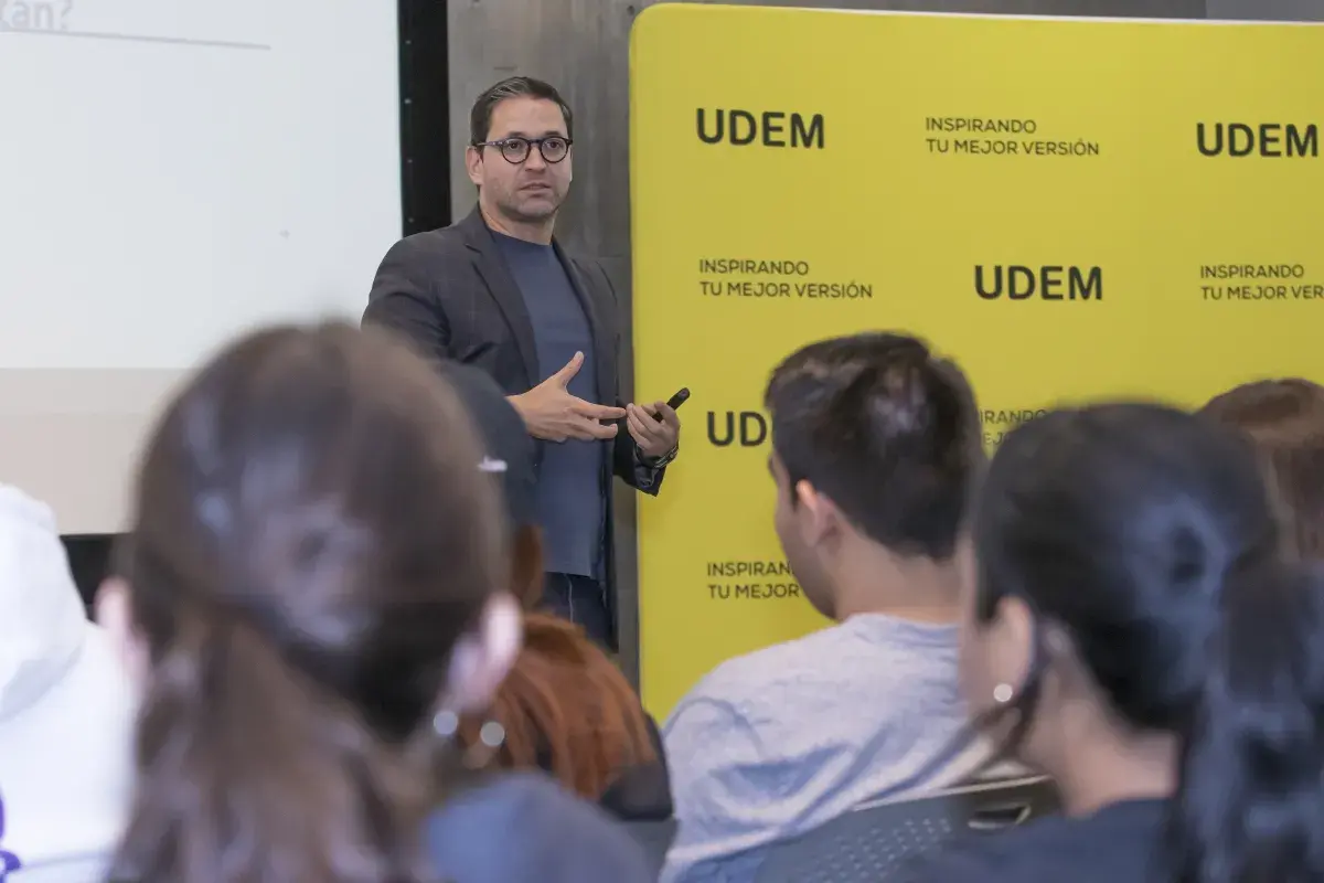 La agenda del evento abrió con la conferencia “Consultoría: contexto y práctica”, a cargo de Bernardo Barrera, quien labora para Galera, empresa que brinda consultoría transformacional en los negocios. El especialista invitó a las y los alumnos a involucrarse en la charla, formulando preguntas que llevaran a la reflexión y presentando casos de estudio que hicieran a los asistentes proponer recomendaciones de acción.