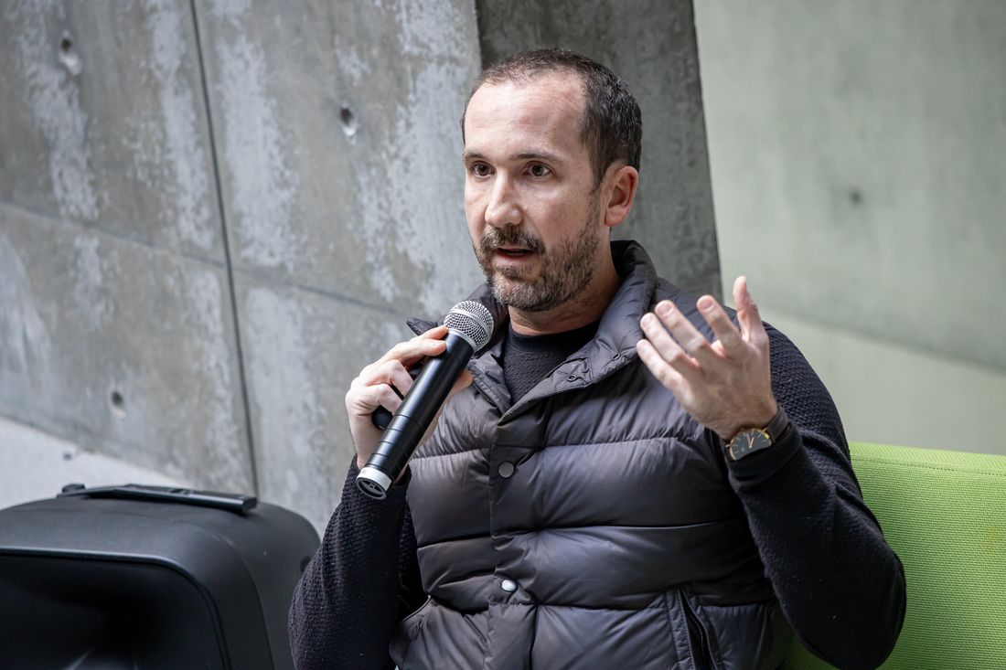 El encuentro con el cofundador del estudio Nuumen y egresado de la institución se realizó en el Ágora Oriente del Centro Roberto Garza Sada, como parte del Ciclo de Conferencias Estudio de elementos del diseño, organizado por la Escuela de Arquitectura de la Universidad de Monterrey.