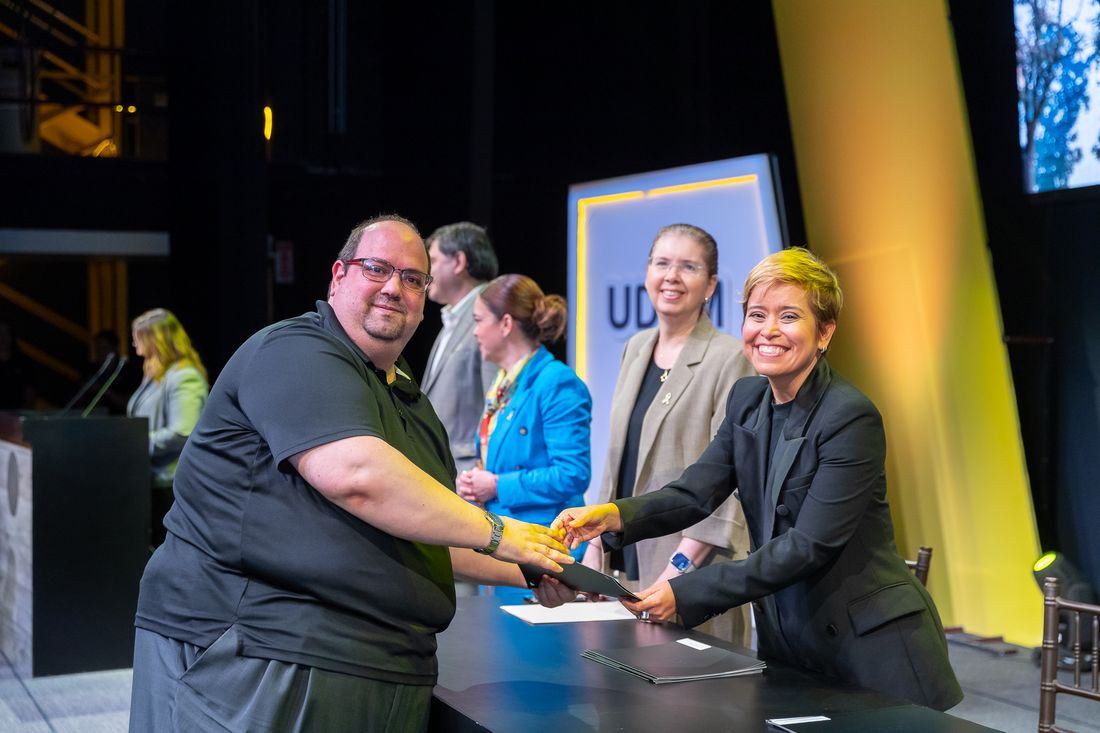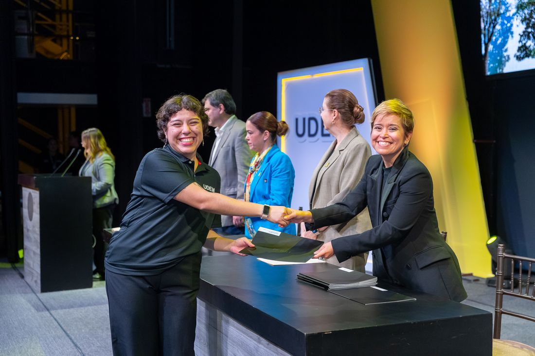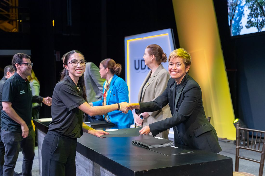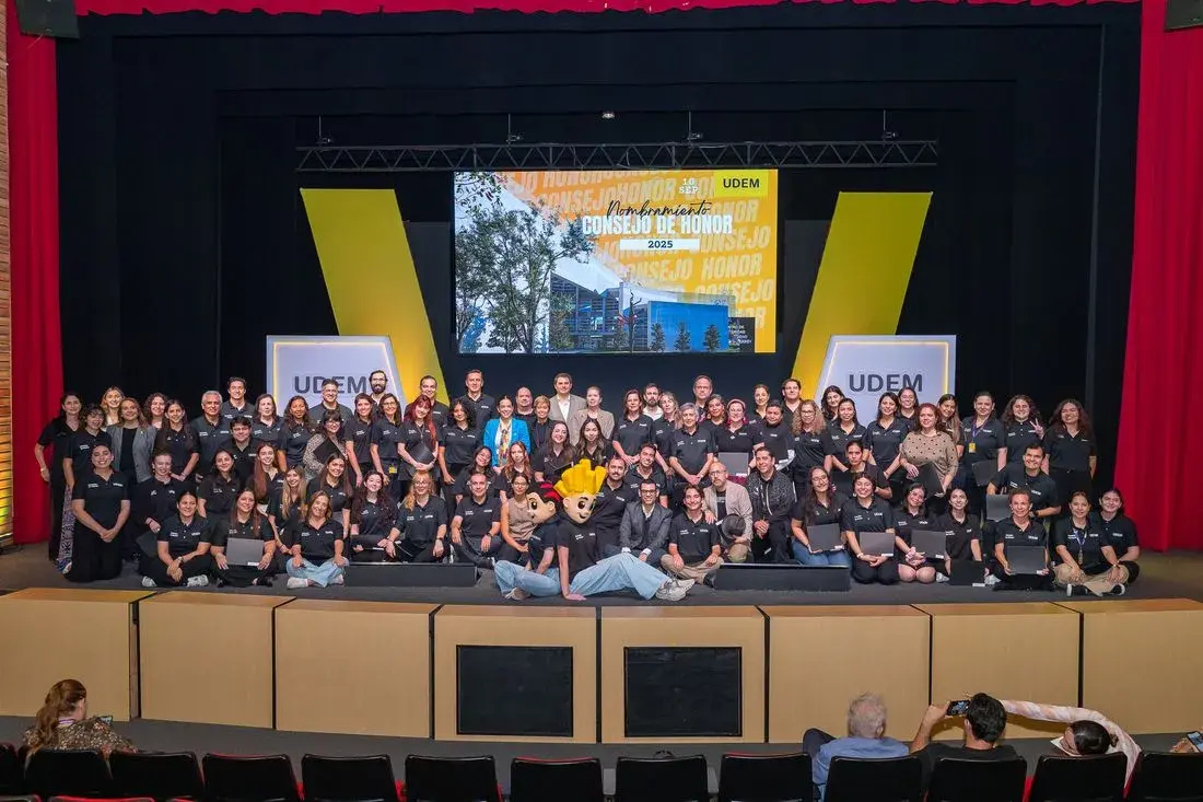 La ceremonia, realizada desde el Teatro UDEM, contó con la presencia de directivas y directivos universitarios como Isabella Navarro Grueter, vicerrectora de Formación Integral; Lilia Elida García Rodríguez, vicerrectora de Ciencias de la Salud; Jessica Ochoa Zamarripa, decana de la Escuela de Artes, en representación del vicerrector Carlos Basurto Meza; y Jean Gabriel Guerrero Dib, director de Identidad y Principios Institucionales.