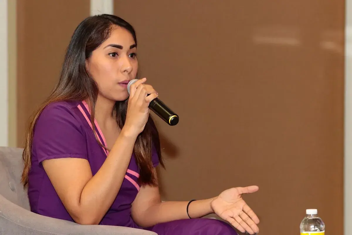 La terapista ofreció la conferencia Sector público, criterios y terapias para niños con TEA, esta tarde, durante la cual explicó al alumnado el trabajo que realiza dentro del Centro de Rehabilitación y Educación Especial del DIF Nuevo León.