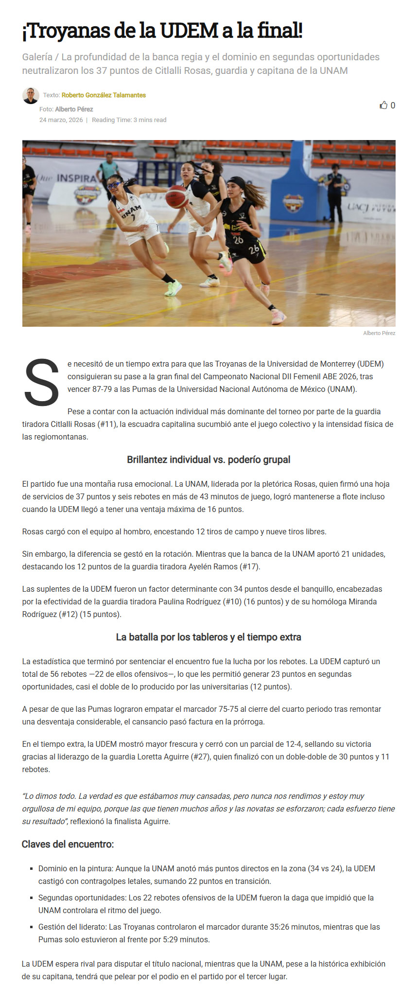 Troyanas a la final de basquetbol