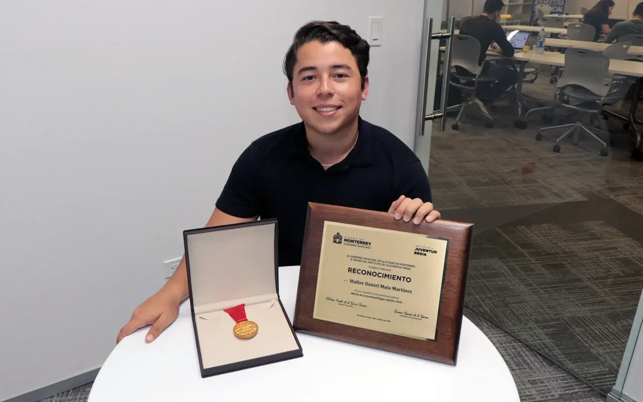 Sus aportaciones a nuevos materiales de construcción, su emprendimiento y sus proyectos sociales llevaron a Walter Daniel Mata Martínez, estudiante de la Universidad de Monterrey, a obtener el reconocimiento al Mérito de la Juventud Regia 2018.