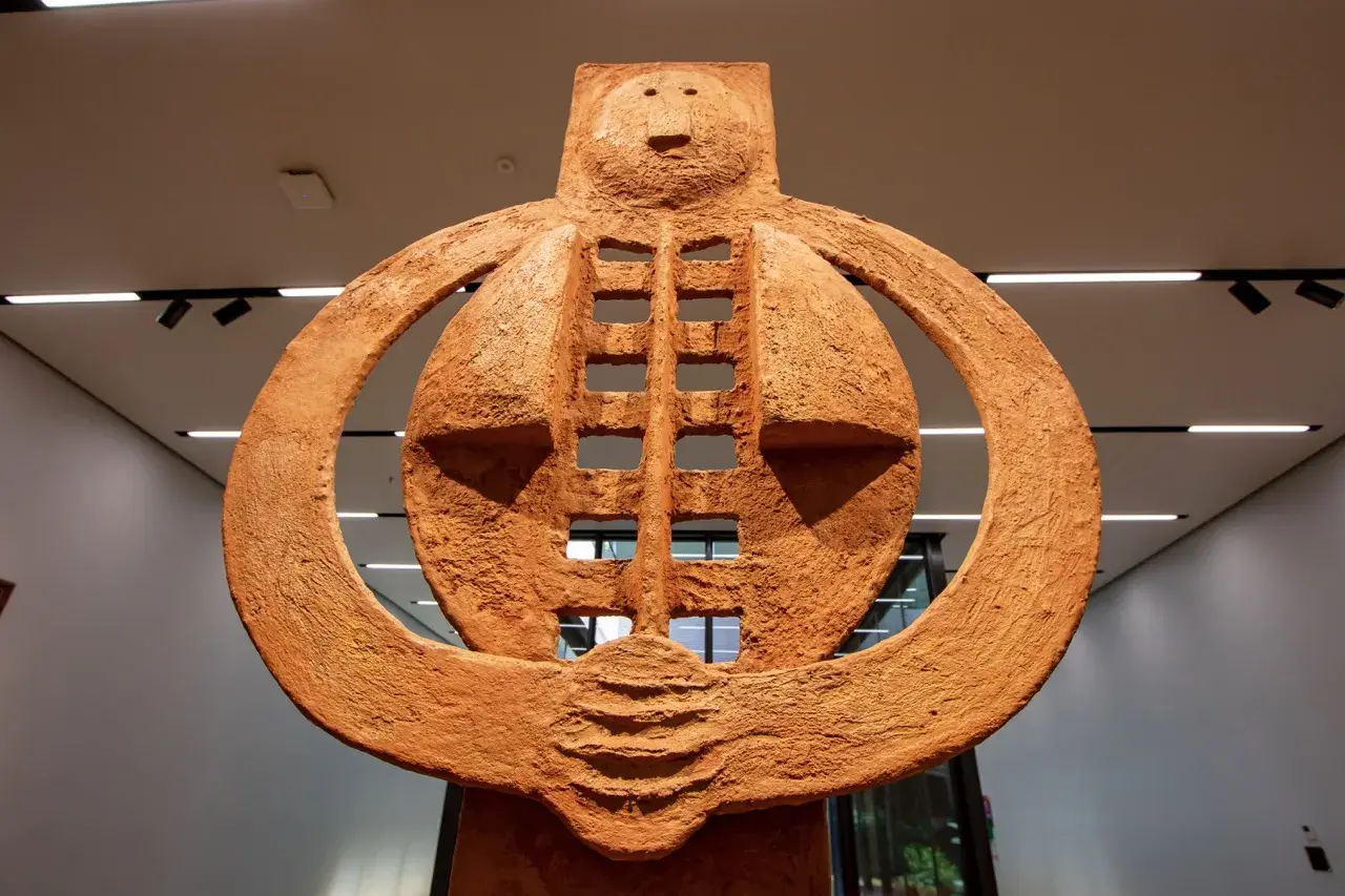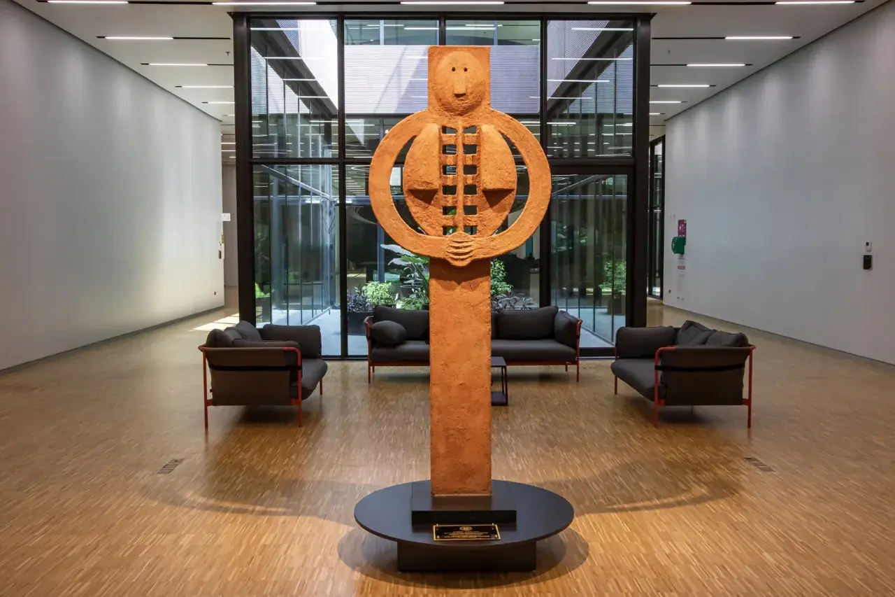 La obra que forma parte de los símbolos de la UDEM, representa al ser humano y nos remite al lema de la UDEM: “El ser humano solo alcanza su plenitud al servicio del hombre”, para materializar en ella la aspiración de la universidad de formar personas íntegras y plenas, que encuentren su realización en el servicio a los demás.
