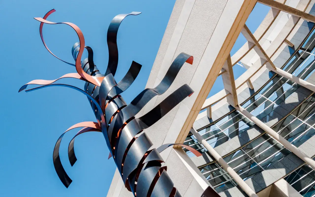 Creada por Fernando González Gortázar, Serpentina se distingue por su capacidad de adaptarse al entorno. A pesar de la serenidad de la explanada y la aparente quietud del metal, la obra demuestra flexibilidad y resistiendo la inmovilidad.