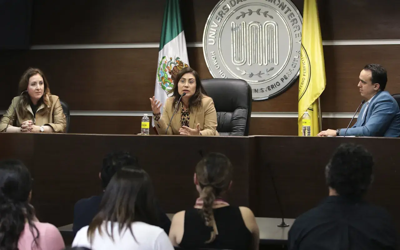 El evento, realizado este mediodía en la Sala de Juicios Orales de la UDEM, fue moderado por Elisa Guadalupe García Carrillo, coordinadora general de Abogadas MX y exalumna de la UDEM.