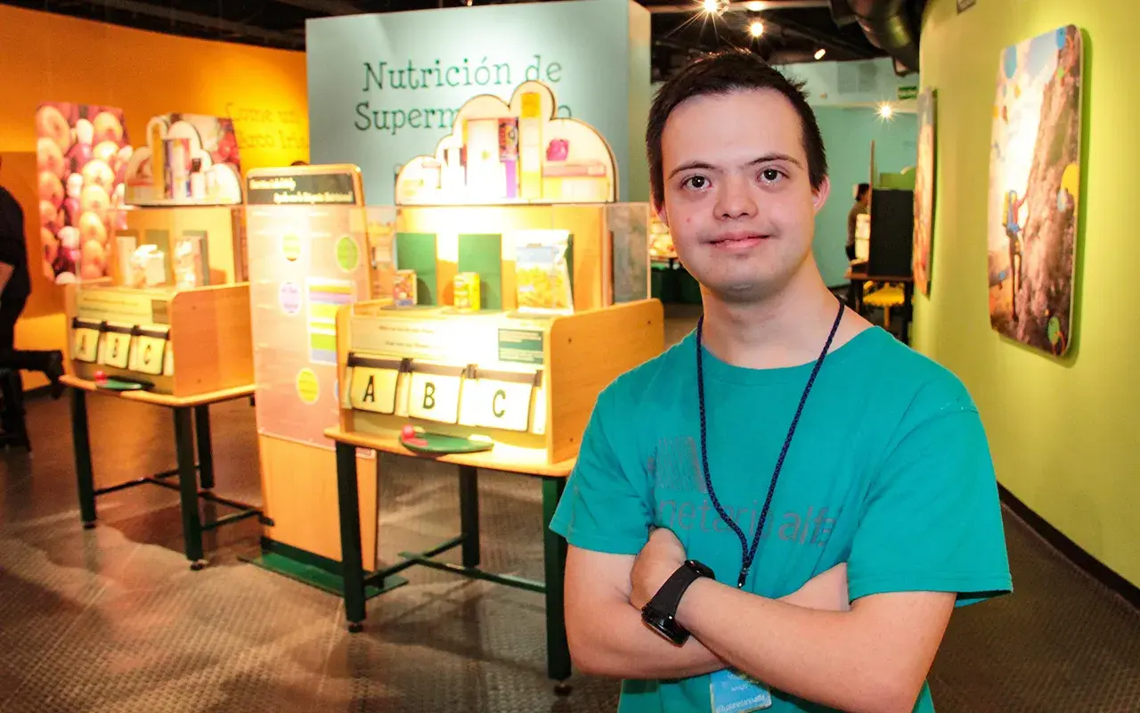 “Estoy feliz (trabajando aquí. Me gusta todo de aquí”, compartió Aleyda Rivera Soto, guía en Planetario Alfa, en donde ayuda a los visitantes a la exhibición “Come bien, juega bien”.