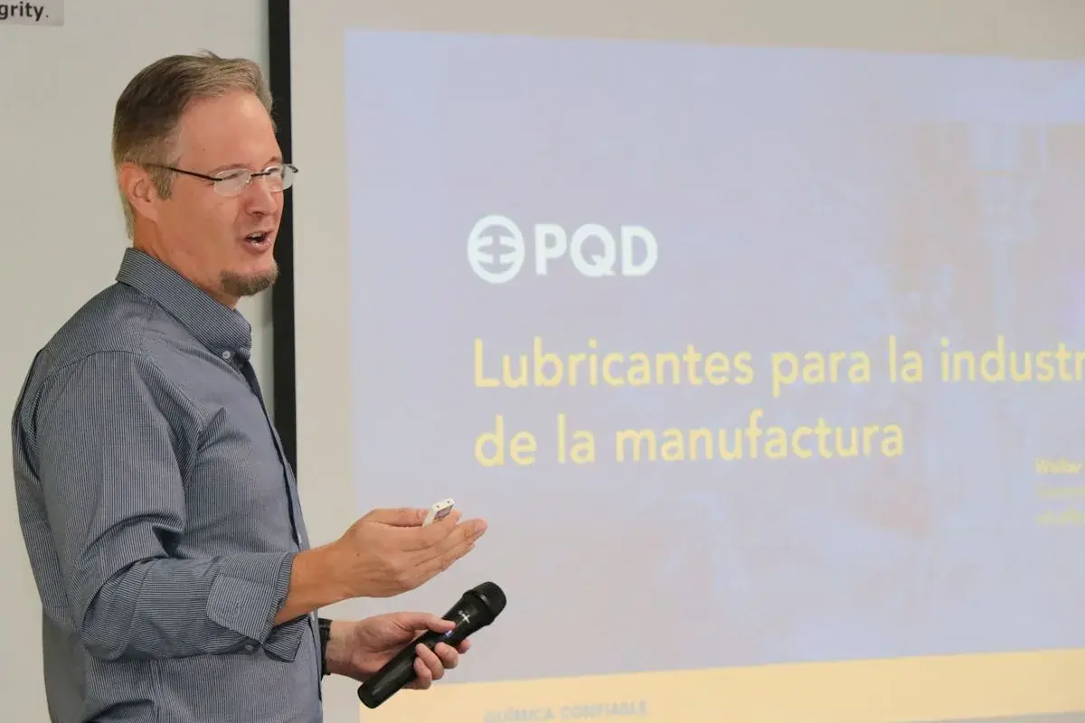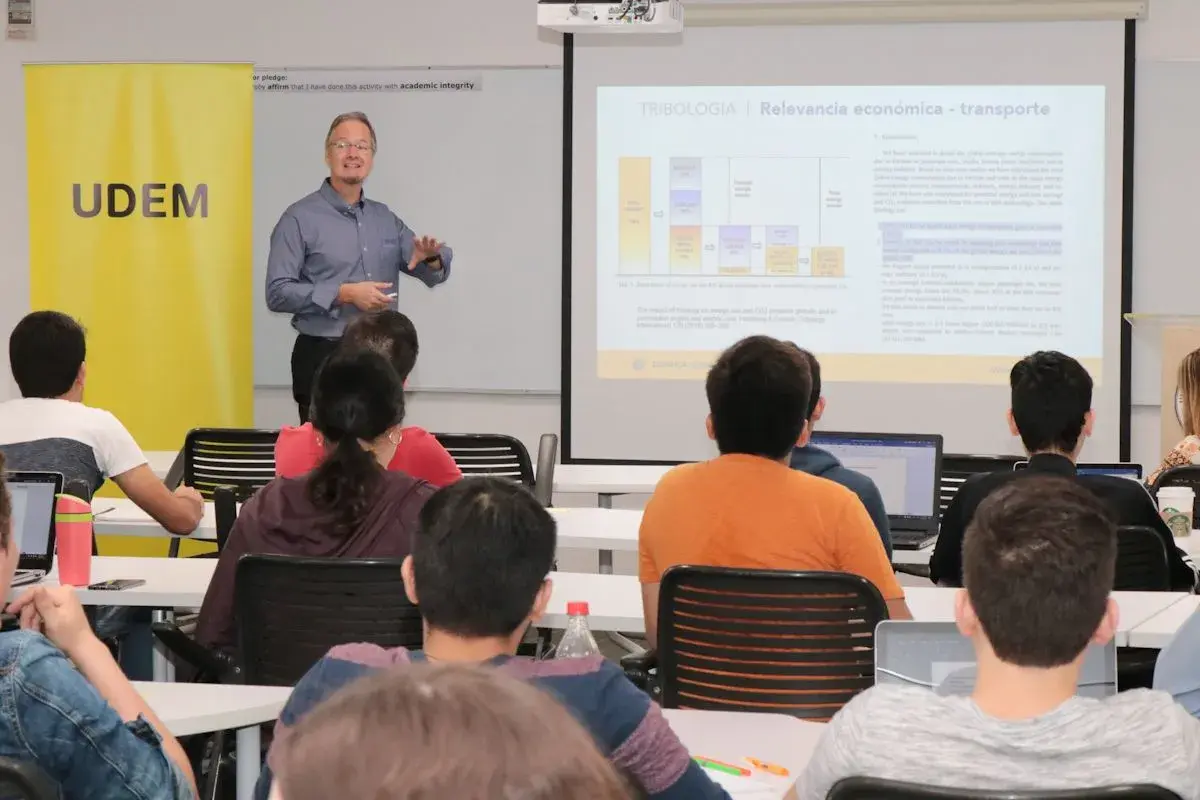 Estudiantes de la Escuela de Ingeniería y Tecnologías de la UDEM asistieron a las conferencias impartidas por Walter Hugler, gerente técnico de la empresa PQD; y Javier Ortega Sáenz, catedrático del Departamento de Ingeniería Mecánica de la Universidad de Texas Río Grande Valley; quienes ofrecieron diferentes perspectivas sobre lubricantes en la industria.