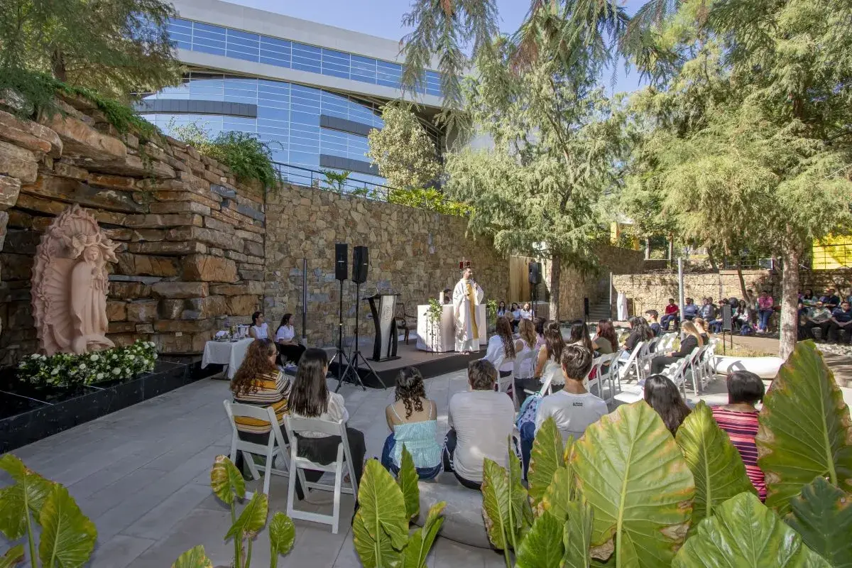 La ceremonia eucarística, en la que se dio gracias por el aniversario de la única Universidad de inspiración católica en la entidad, se realizó la mañana de este viernes, en los jardines de El Solar, a un lado del arroyo de la cañada, donde está colocada la Gruta de la Virgen.