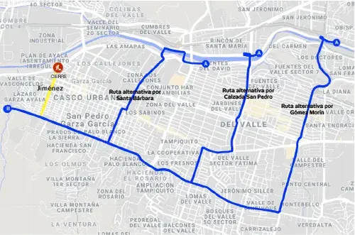 En caso de circular por Av. Ignacio Morones Prieto (dirección oriente-poniente), es conveniente incorporarse a la Av. Alfonso Reyes con anticipación para evitar una acumulación de vehículos en la intersección con Av. Jiménez.