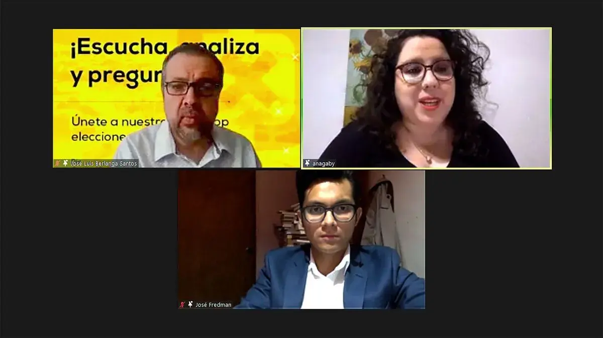 José Fredman Mendoza Ibarra y José Luis Berlanga Santos, profesores de la Escuela de Derecho y Ciencias Sociales; y Ana Gabriela Sáenz Barrera, coordinadora del grupo Acción Cívica Interuniversitaria en la UDEM, participaron en la Mesa de análisis poselectoral: la nueva configuración política en México, que se desarrolló en un formato virtual, la tarde del pasado jueves 10 de junio.