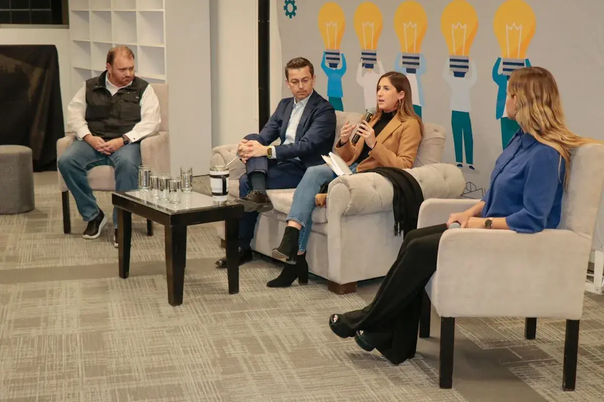 Valeria Sada, CEO de Think Workspace; Américo Ferrara, managing partner de Life is too short; y Rogelio de los Santos, managing partner de Dalus Capital; participaron en el panel Ecosistemas emprendedores exitosos, que se desarrolló la noche del miércoles, en el Hub de Emprendimiento de la UDEM.