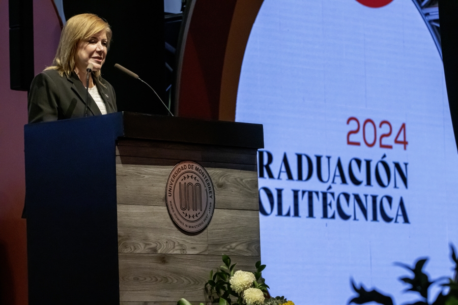 La ceremonia de graduación estuvo presidida por María del Roble Garza Treviño, vicerrectora de Educación Media Superior de la UDEM, quien instó a las y los graduandos a ser agentes de cambio y portadores de esperanza, sin tener miedo a soñar en grande y actuar con valentía.