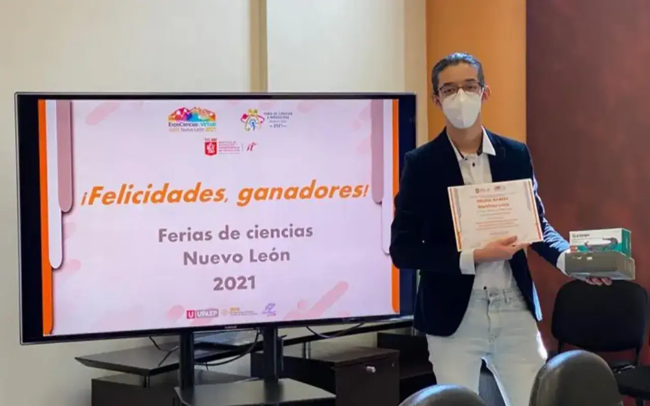 Debido a este proyecto, Héctor Andrés Martínez Luna, alumno de la Prepa UDEM Unidad Valle Alto, obtuvo el primer lugar de Expociencias Nacional, que se desarrolló del 7 al 10 de diciembre pasado, y representará a Latinoamérica en el Stockholm International Youth Science Seminar (SIYSS), a celebrarse en Estocolmo, Suecia, en 2022.