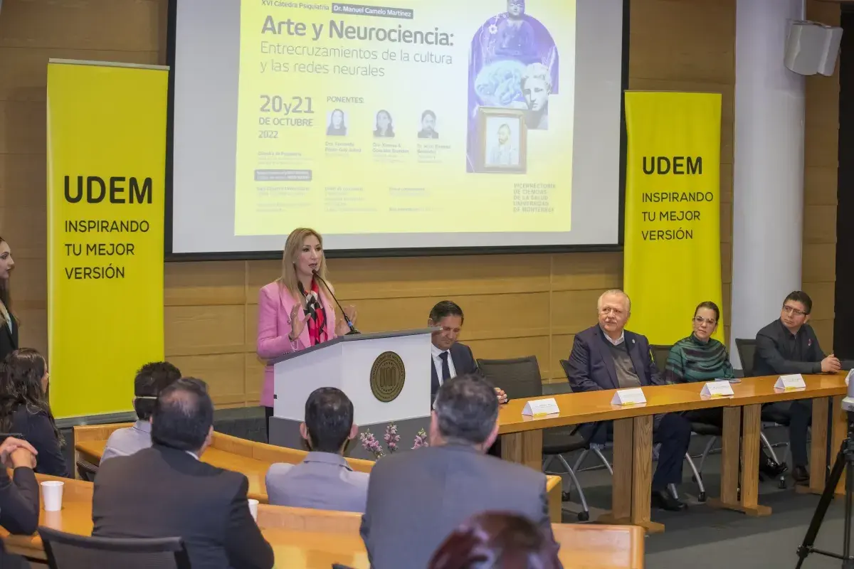 - Inauguran la XVI Cátedra de Psiquiatría Dr. Manuel Camelo Martínez de la Universidad de Monterrey que ahonda en las conexiones entre las expresiones artísticas y el conocimiento del cerebro; abre el evento Alma Rosa Marroquín Escamilla, secretaria de Salud de Nuevo León