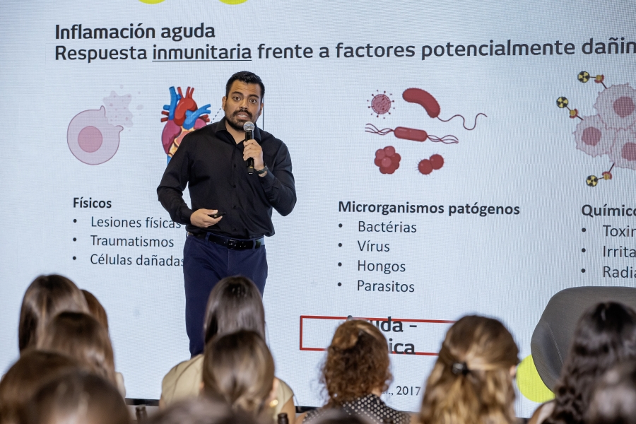 La primera ponencia académica estuvo a cargo de César Huerta Canseco, especialista en nutrición y neurociencia, quien abordó temas relacionados con la inflamación crónica de bajo grado y su impacto en la práctica clínica.