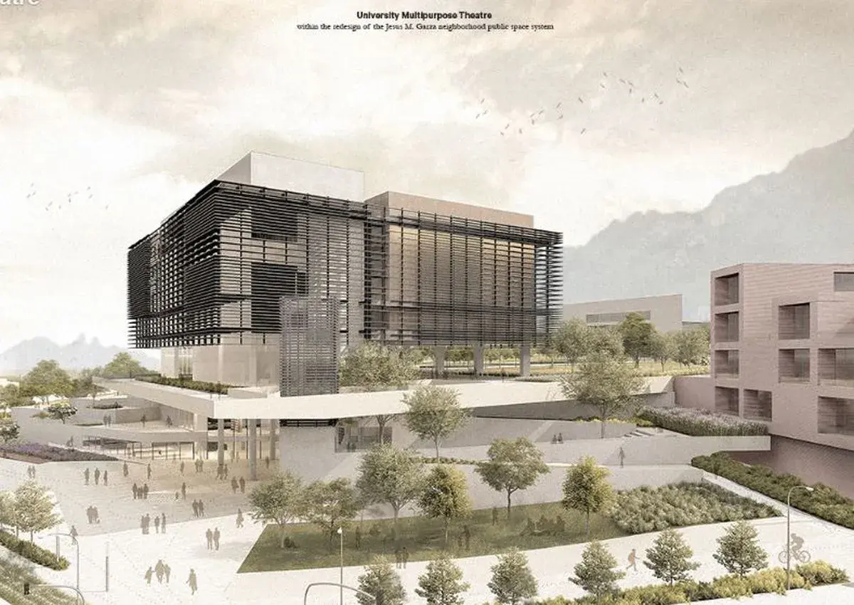 El segundo proyecto es “University Multipurpose Theatre” de Abelardo Rodríguez Vázquez, Gustavo Adrián Montemayor Magallanes y Dafne García Rubio, también egresados de Arquitectura. Su propuesta es un rediseño de la colonia Jesús M. Garza en San Pedro, Nuevo León, comunidad aledaña al campus de la UDEM.