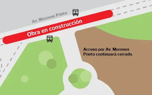 Debido al avance en las obras de construcción sobre la Av. Morones Prieto, las paradas de transporte público sobre ésta han vuelto a operar. Así que si tomabas alguna unidad de transporte público que llegaba a las paradas que se sitúan frente al campus, podrás volver a hacerlo, solo te pedimos tomar en cuenta que la entrada peatonal de Av. Morones Prieto permanecerá cerrada hasta nuevo aviso, por lo que si usas estas paradas, podrás acceder al campus por el drop off de Av. José Calderón.