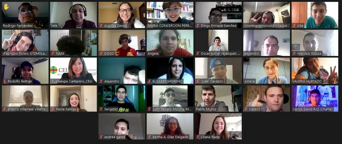 Las seis alumnas del programa académico de Psicopedagogía, dentro de sus prácticas profesionales, dan seguimiento a 13 estudiantes de PISYE que colaboran de manera virtual con sus pares de CEU San Pablo, a su vez apoyados por seis estudiantes de Arquitectura de aquella institución.