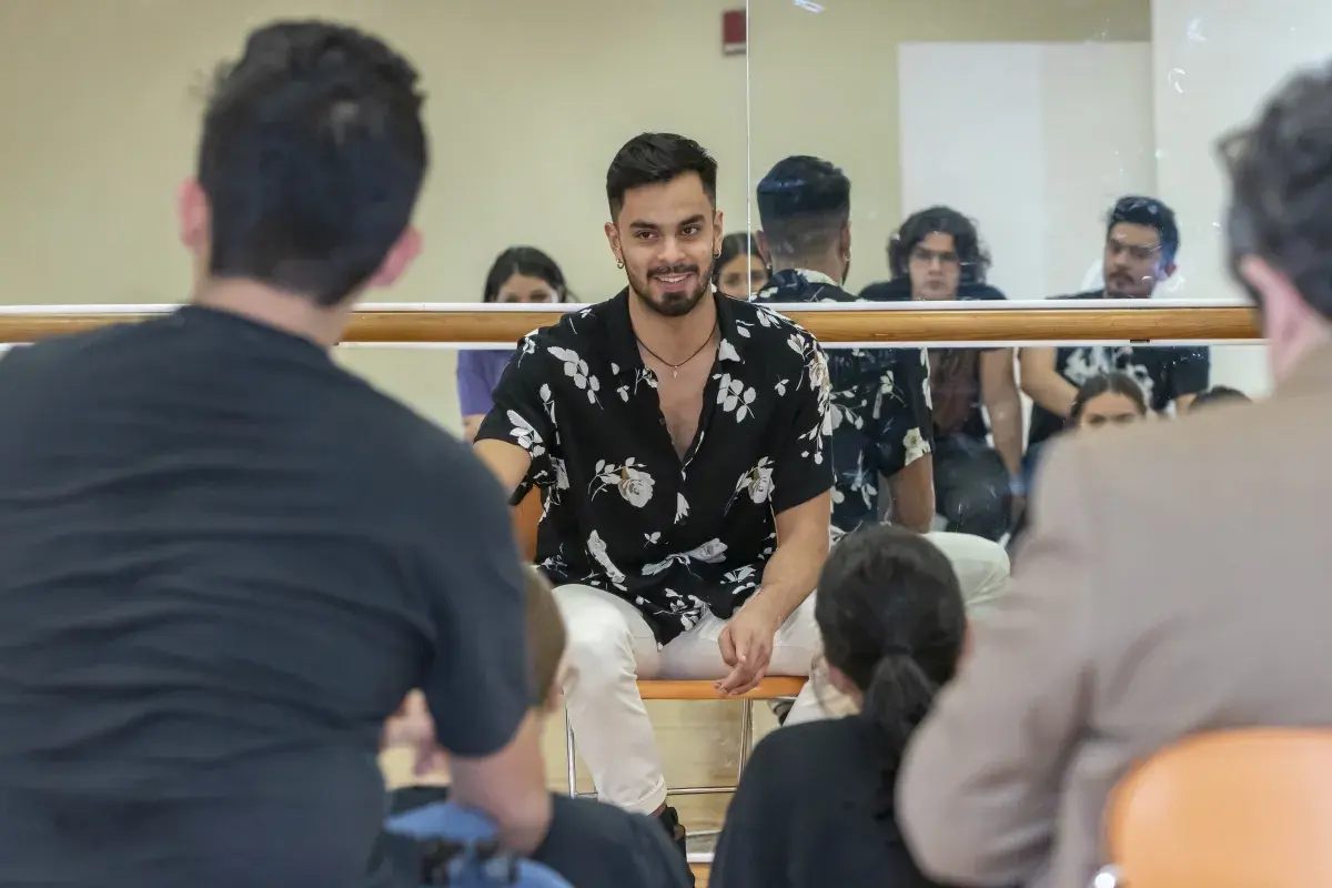 Una lección de perseverancia y trabajo duro para alcanzar los sueños es lo que brindó Raúl Contreras Villarreal, egresado de la Prepa UDEM y bailarín del espectáculo Moulin Rouge! de Broadway, en la charla que sostuvo el 2 de marzo con estudiantes de Difusión Cultural de la Universidad de Monterrey.