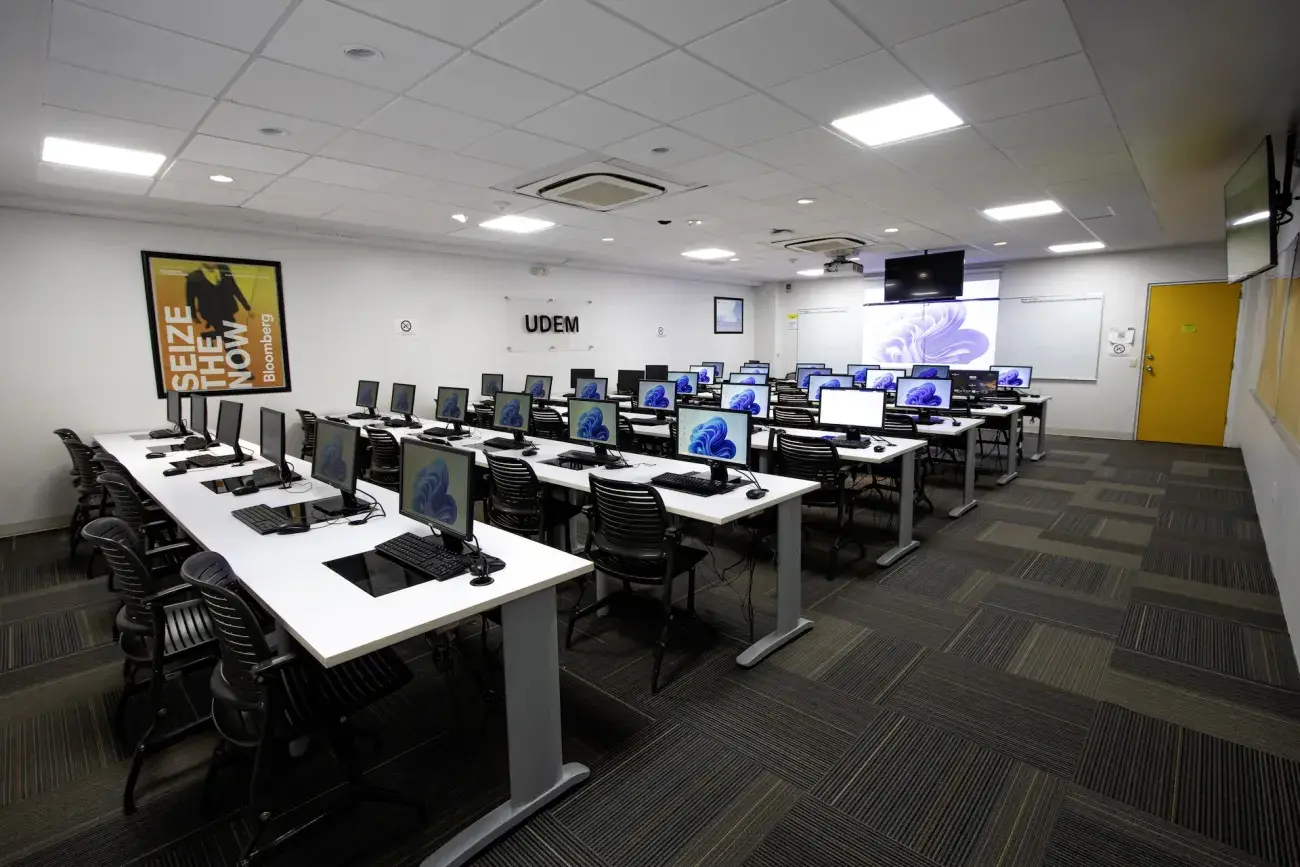 En estos laboratorios se cuenta con 37 equipos en ambos, en ellos podrás utilizar los recursos tecnológicos necesarios para realizar tus actividades académicas. Estos recursos incluyen simuladores, así como paquetes estadísticos, financieros y contables, los cuales son requeridos por las diversas materias de los programas académicos de la Escuela de Negocios.